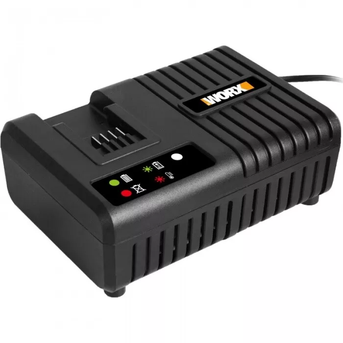 - WA3880 - Nabíječka 20 V, 2 AS touto rychlonabíječkou lze za krátkou dobu nabít jakýkoli 20V akumulátor Worx Powershare. Doba nabíjení závisí na kapacitě nabíjeného akumulátoru: