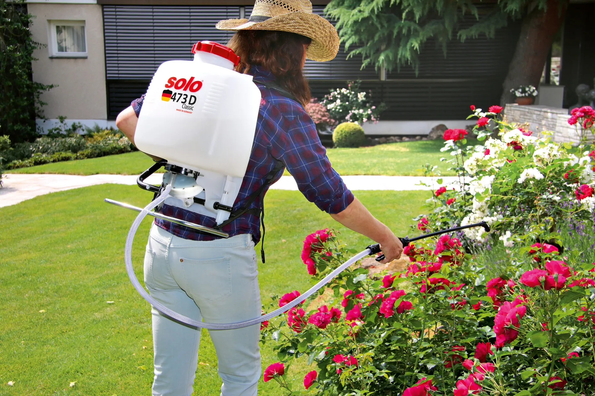 - Zádový tlakový postřikovač SOLO 473 D s nádrží na postřik o objemu 10 l. Je vhodný pro aplikaci postřiků na ochranu rostlin a různých čistících a dezinfekčních prostředků. Postřikovač je vyrobený z pevných lehkých plastů odolných proti záření UV.