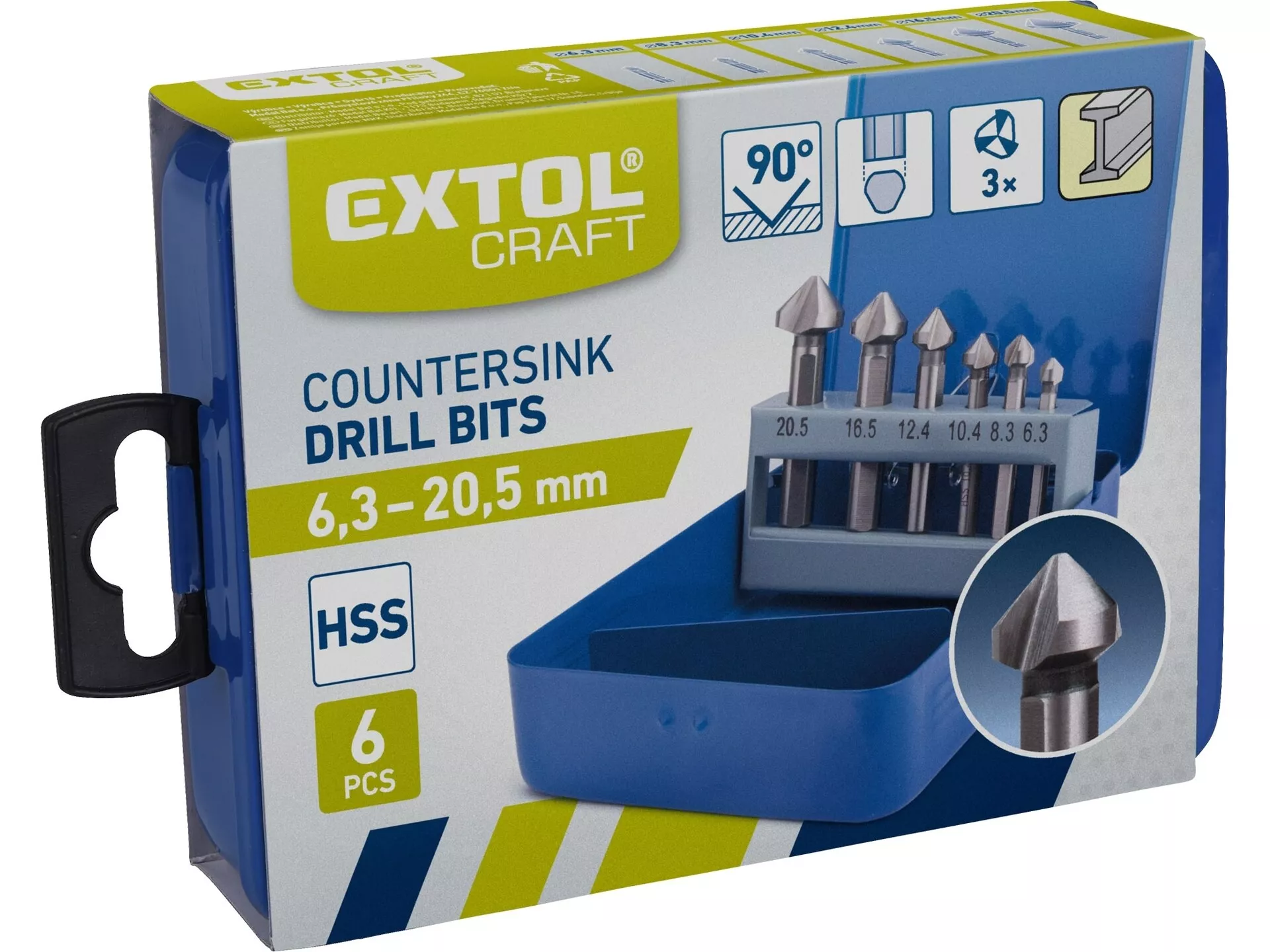 Záhlubníky kuželové 90°, sada 6ks, o 6,3-8,3-10,4-12,4-16,5-20,5mm EXTOL CRAFT 20094