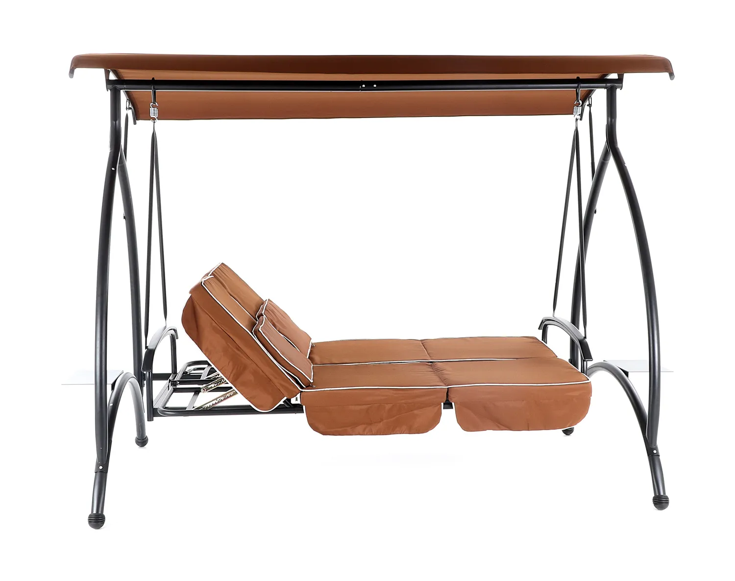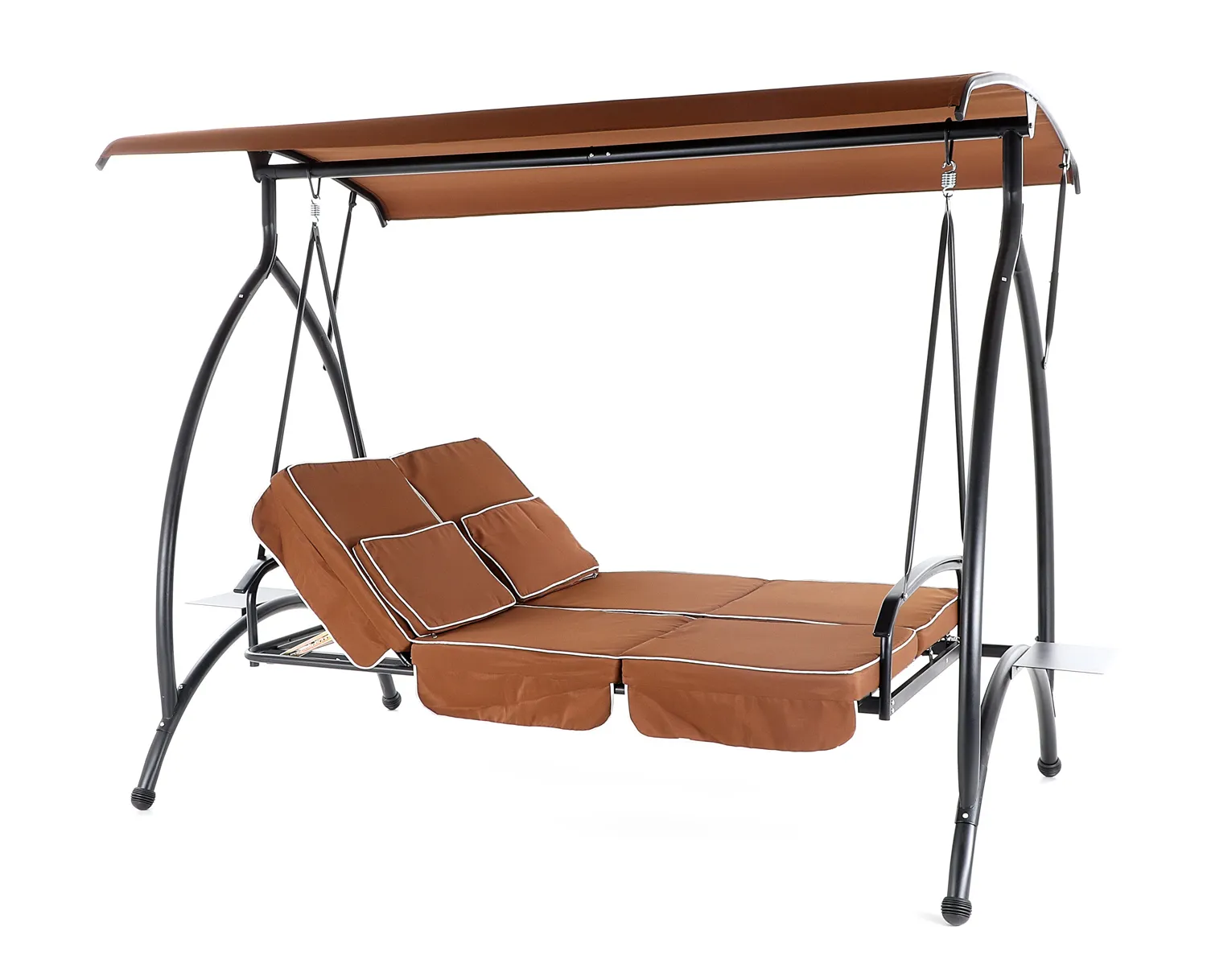 - Tyto vlastnosti vyplývají z použitého materiálu a moderních technologií, na základě kterých je tato zahradní houpačka vyráběna. Při výrobě je použit speciálně upravený ocelový materiál o průměru nosných trubek 48 mm pro vysokou tuhost.