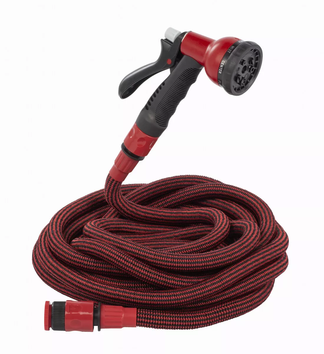 - Kompaktní zahradní hadice, která se snadno skladuje a přesto nabízí dostatečnou délku, aby dosáhla do všech koutů vaší zahrady.