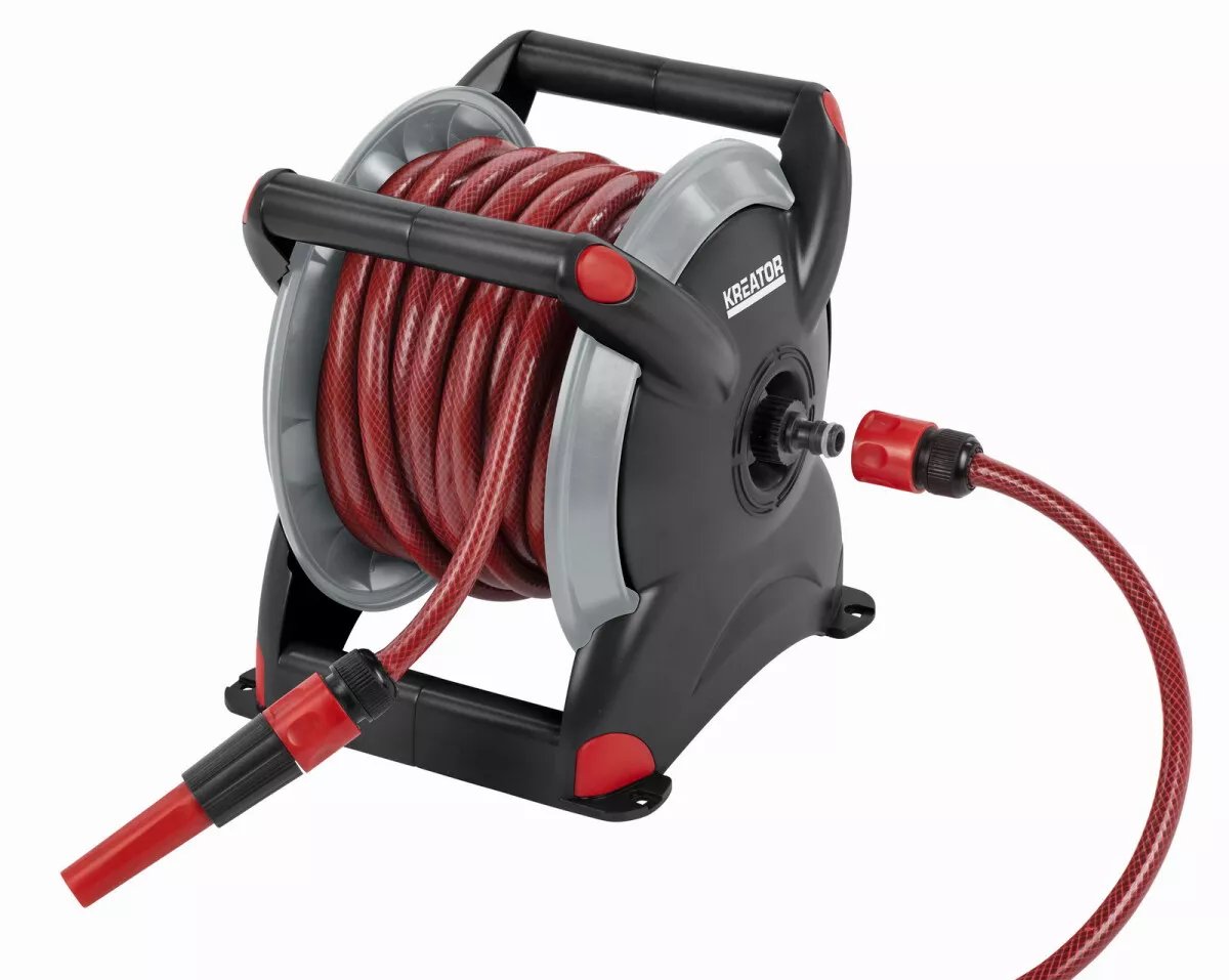 - Pokud chcete zalévat celou zahradu a mít poté možnost vše úhledně uložit, tento naviják a zahradní hadice KRTGR6720 od Kreator je zahradním nářadím pro vás.