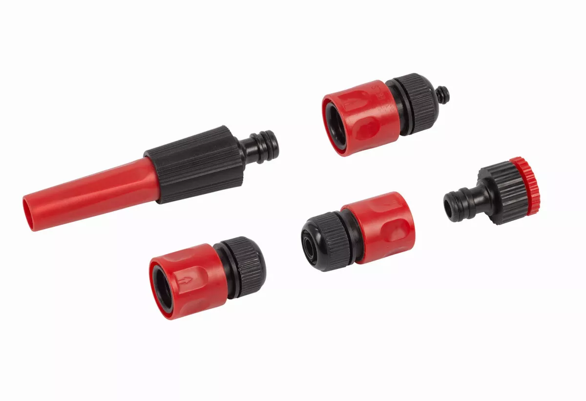 - Součástí jsou také nezbytné univerzální připojovací kusy, takže zahradní hadici lze snadno připojit k libovolnému vodovodnímu kohoutku.