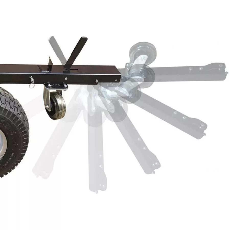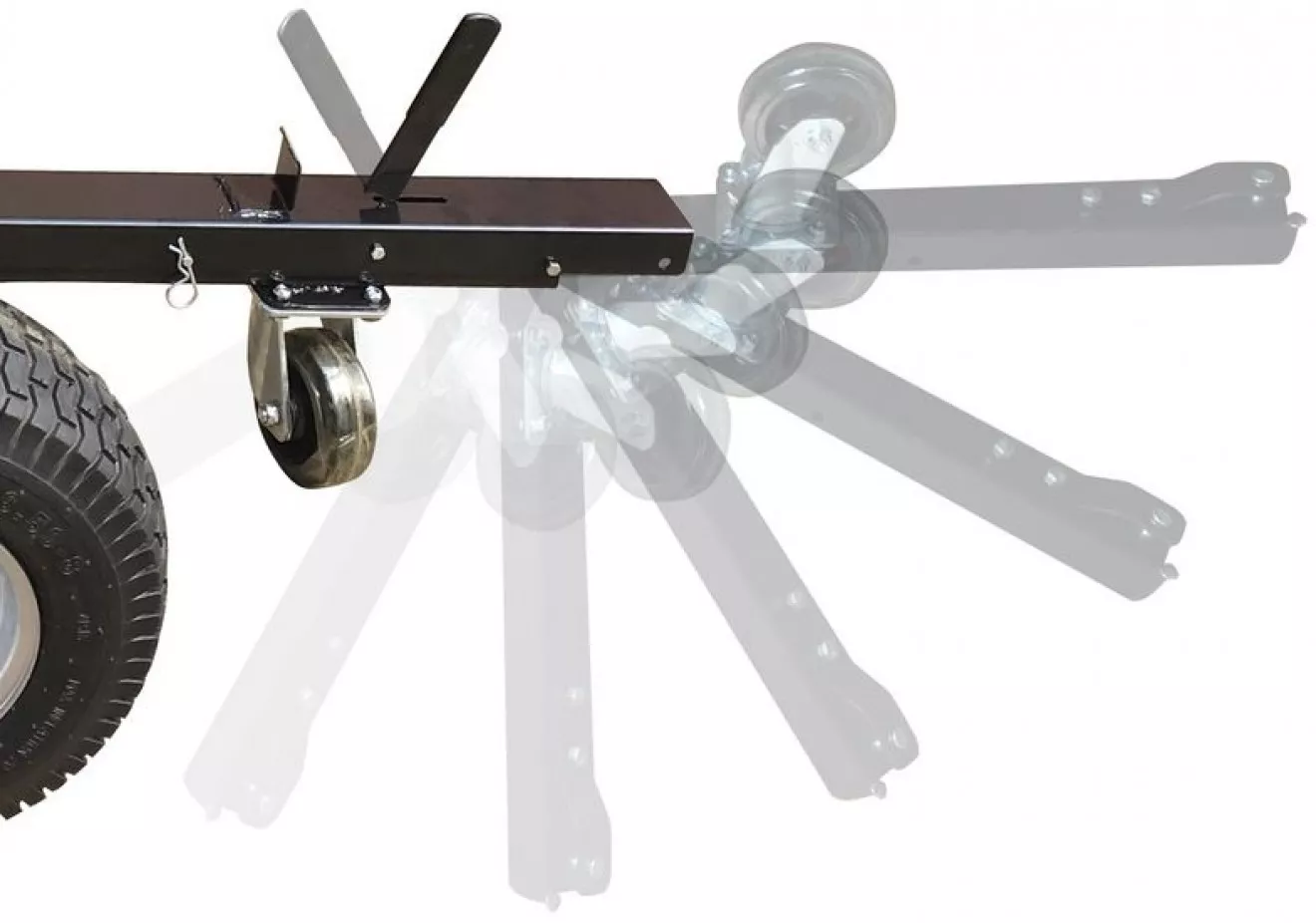 - Prodloužená (2dílná) oj se závěsem pro připojení vozíku za zahradní traktory; vyklápěcí korba z tvrzeného plastu (objem: 300 l, nosnost: 500 kg)