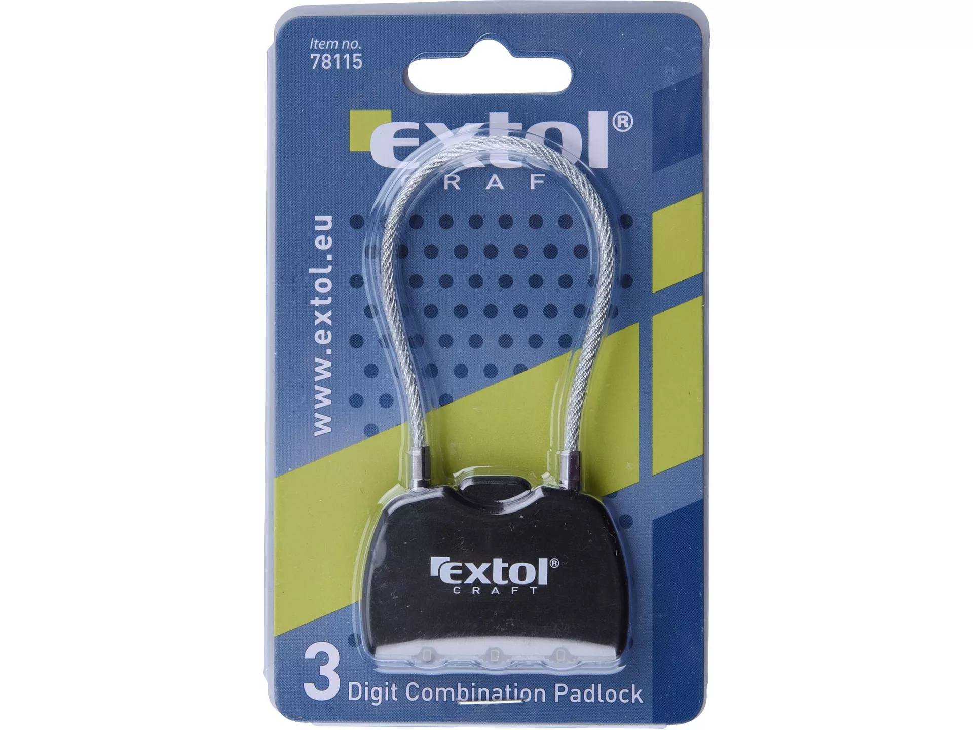 Zámek kombinační s trojmíst. kódem, délka lanka 150mm EXTOL CRAFT 78115