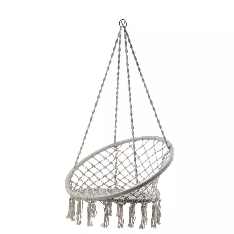 - Závěsné houpací křeslo Sharks je vyrobené z krémově zbarvené bavlny.