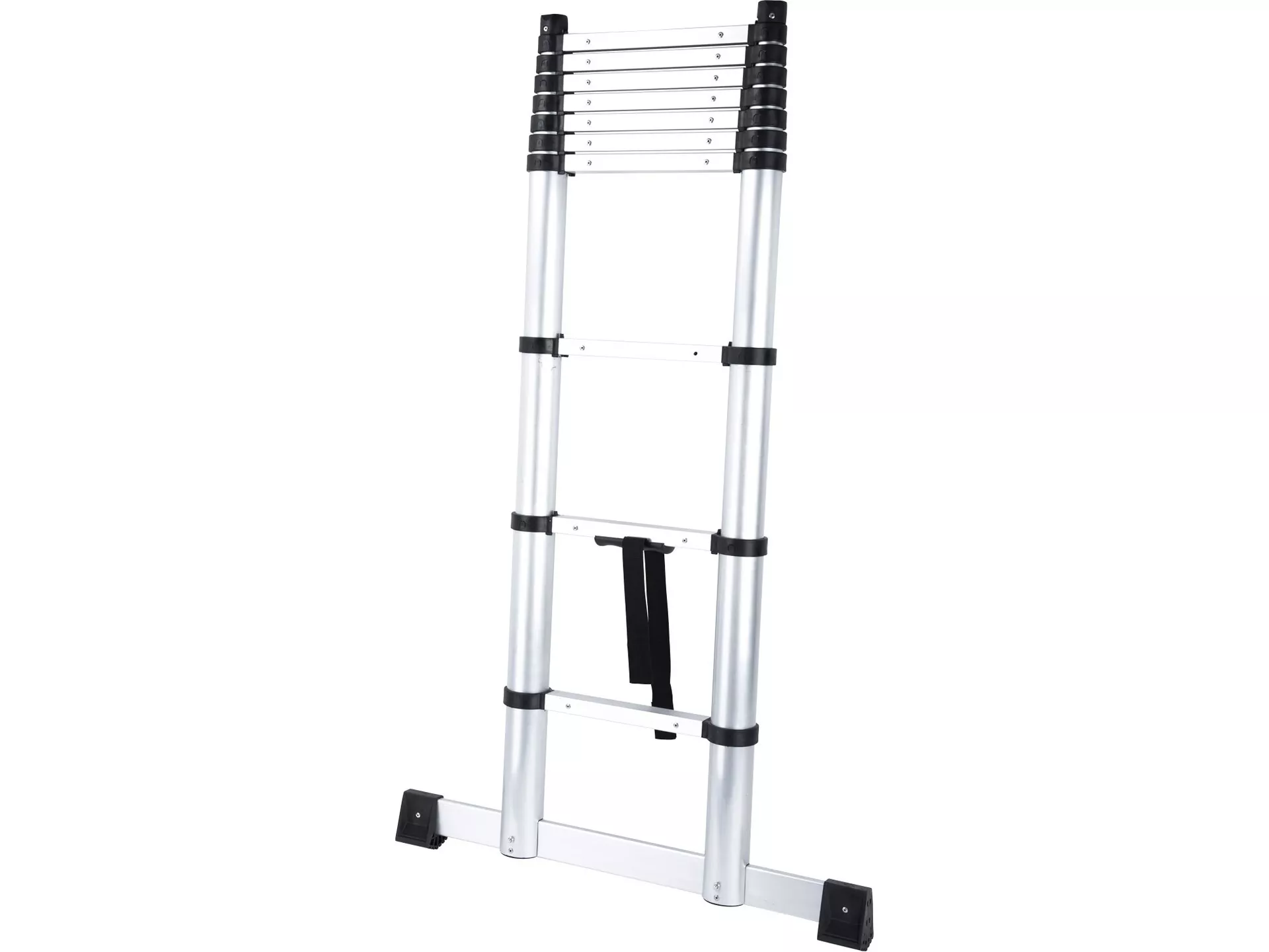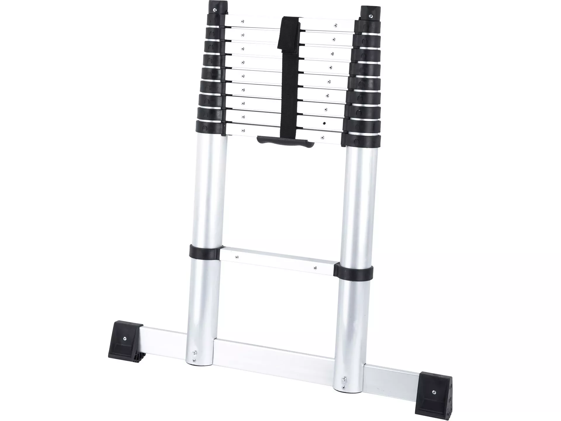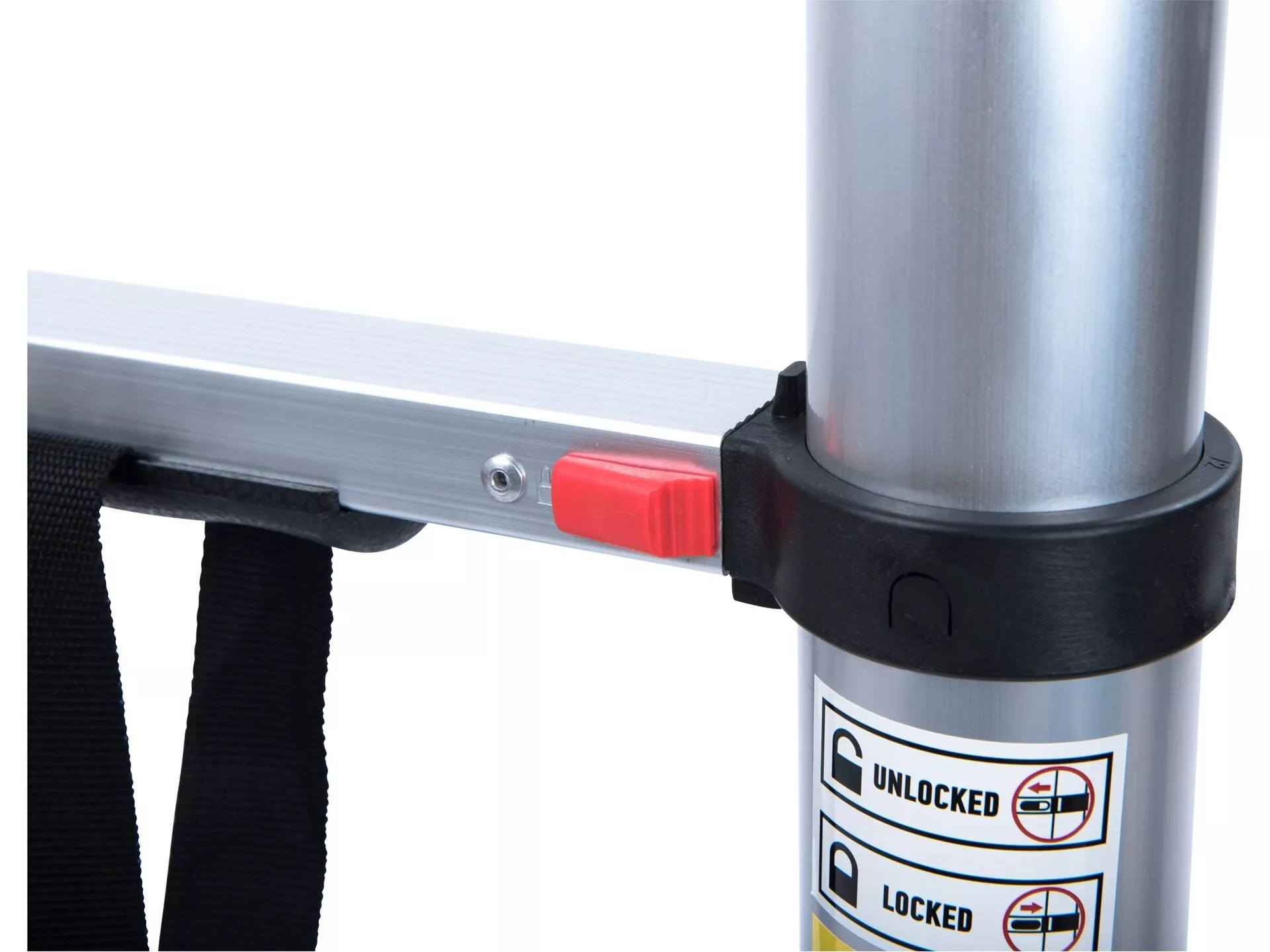 - Doplňující parametr: max. výška 3,2m, rozměry složeného žebříku v.90 x š.86cm, nosnost 150kg, 10 příček, hmotnost 10,5kg, šířka základy (v místě na podlaze) 86cm, šířka žebříku v teleskopické části 30-34cm