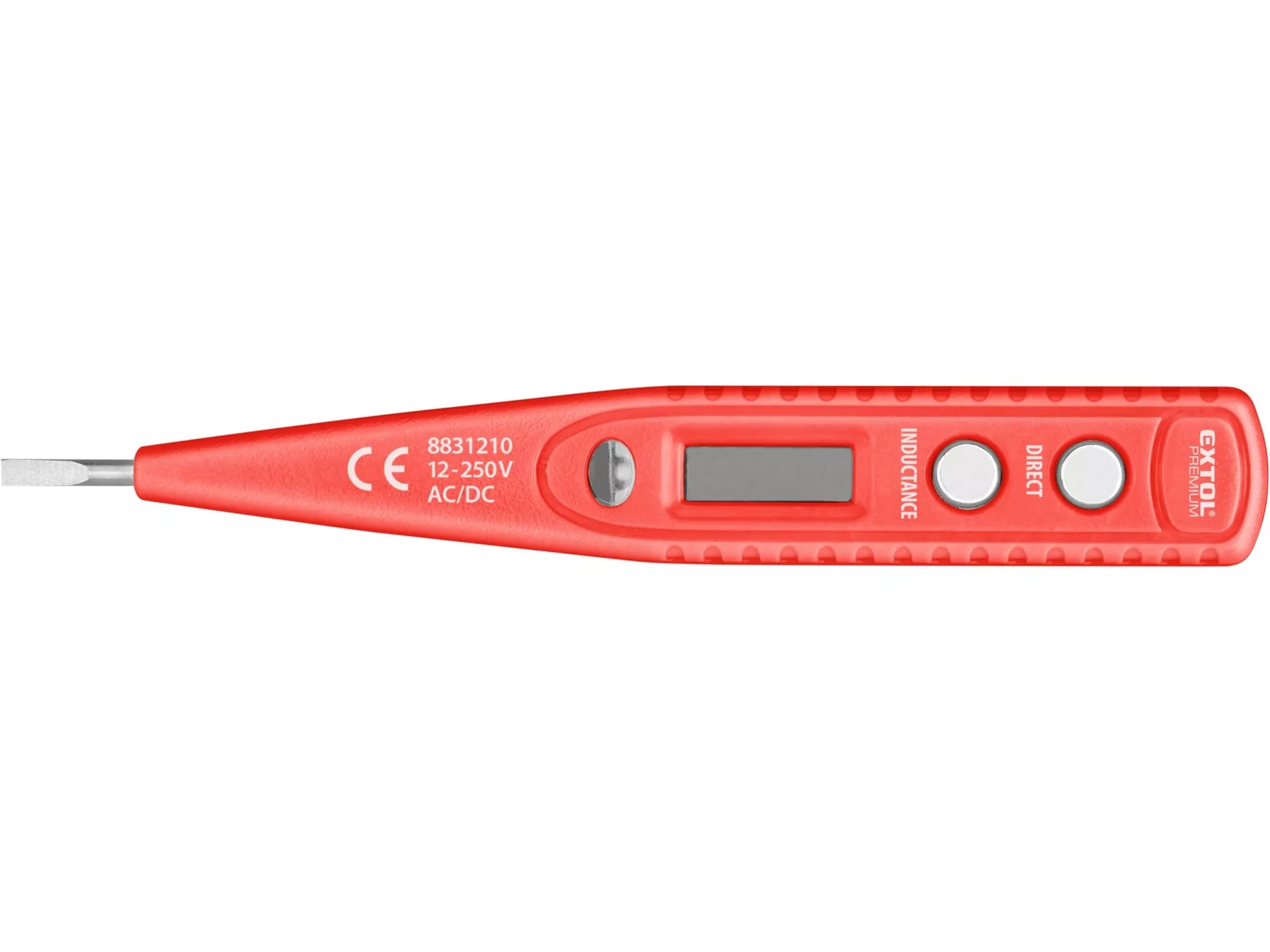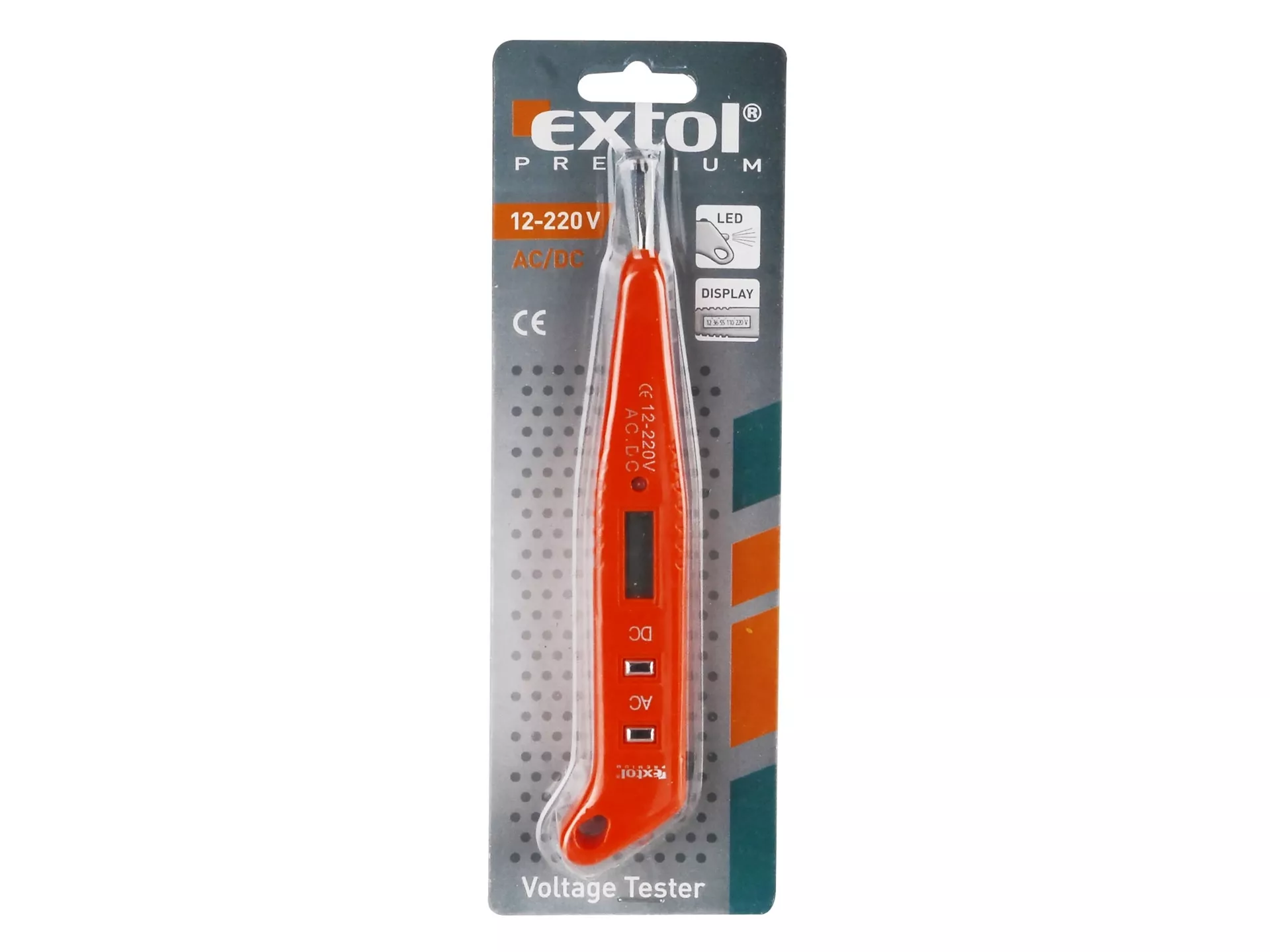 Zkoušečka napětí digitální s displejem 12-220v, délka 146mm, pro ac/dc (střídavý/stejnosměrný proud) EXTOL PREMIUM 8831210