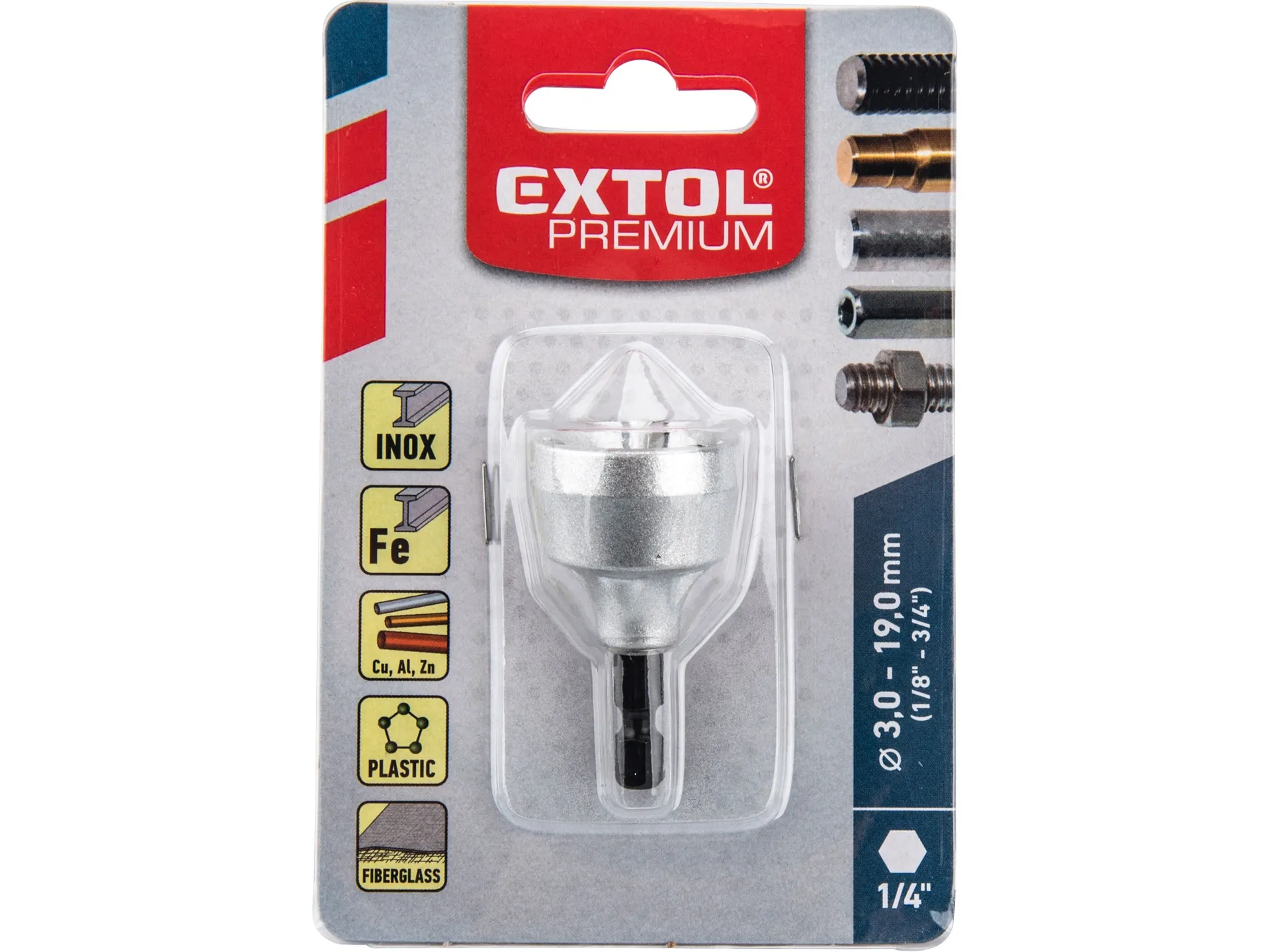 Zrušeno! nahrazeno výrobkem 4769002 odhrotovač do vrtačky hss, pro průměry 3-19mm EXTOL PREMIUM 8801180