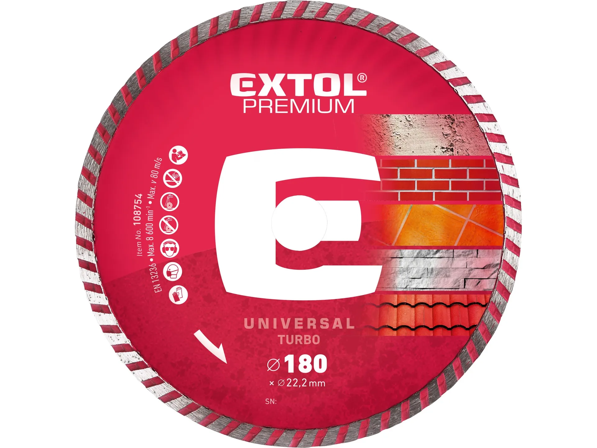 Zrušeno! nahrazeno výrobkem 8803034 kotouč diamantový řezný, turbo - suché i mokré řezání, o 180x22,2x2,5mm EXTOL PREMIUM 108754