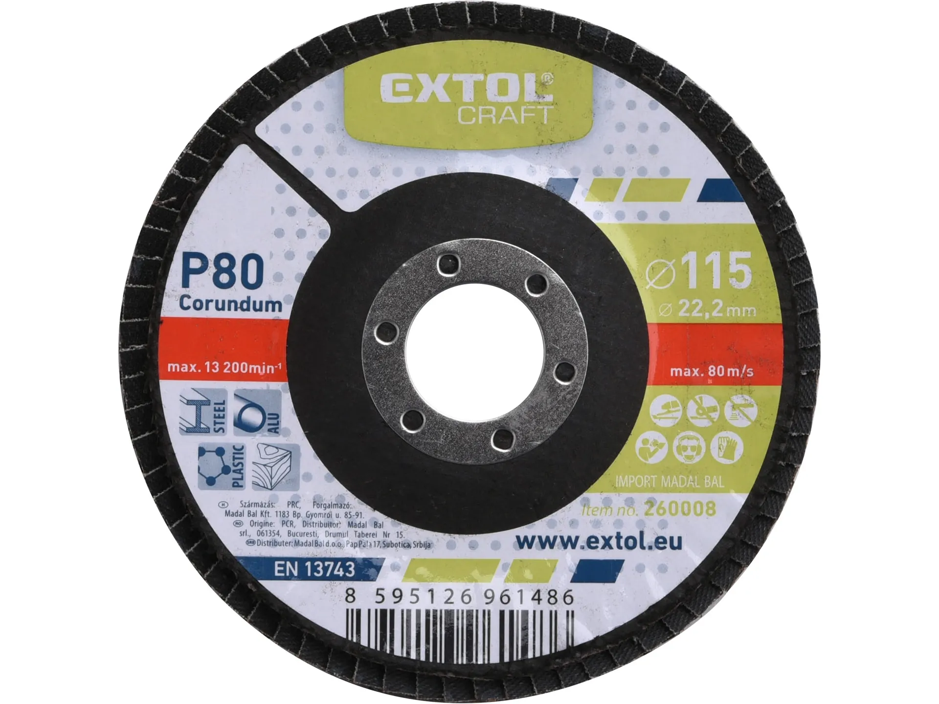Zrušeno! nahrazeno výrobkem 8803464 kotouč lamelový šikmý korundový, p80, o 115mm EXTOL CRAFT 260008