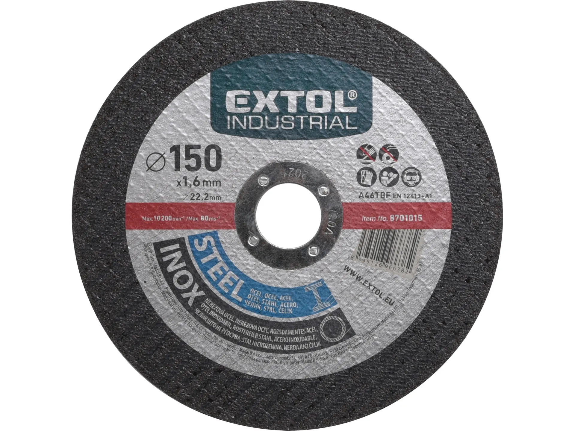 Zrušeno! nahrazeno výrobkem 8808115, kotouč řezný na ocel/nerez, o 150x1,6x22,2mm EXTOL INDUSTRIAL 8701015