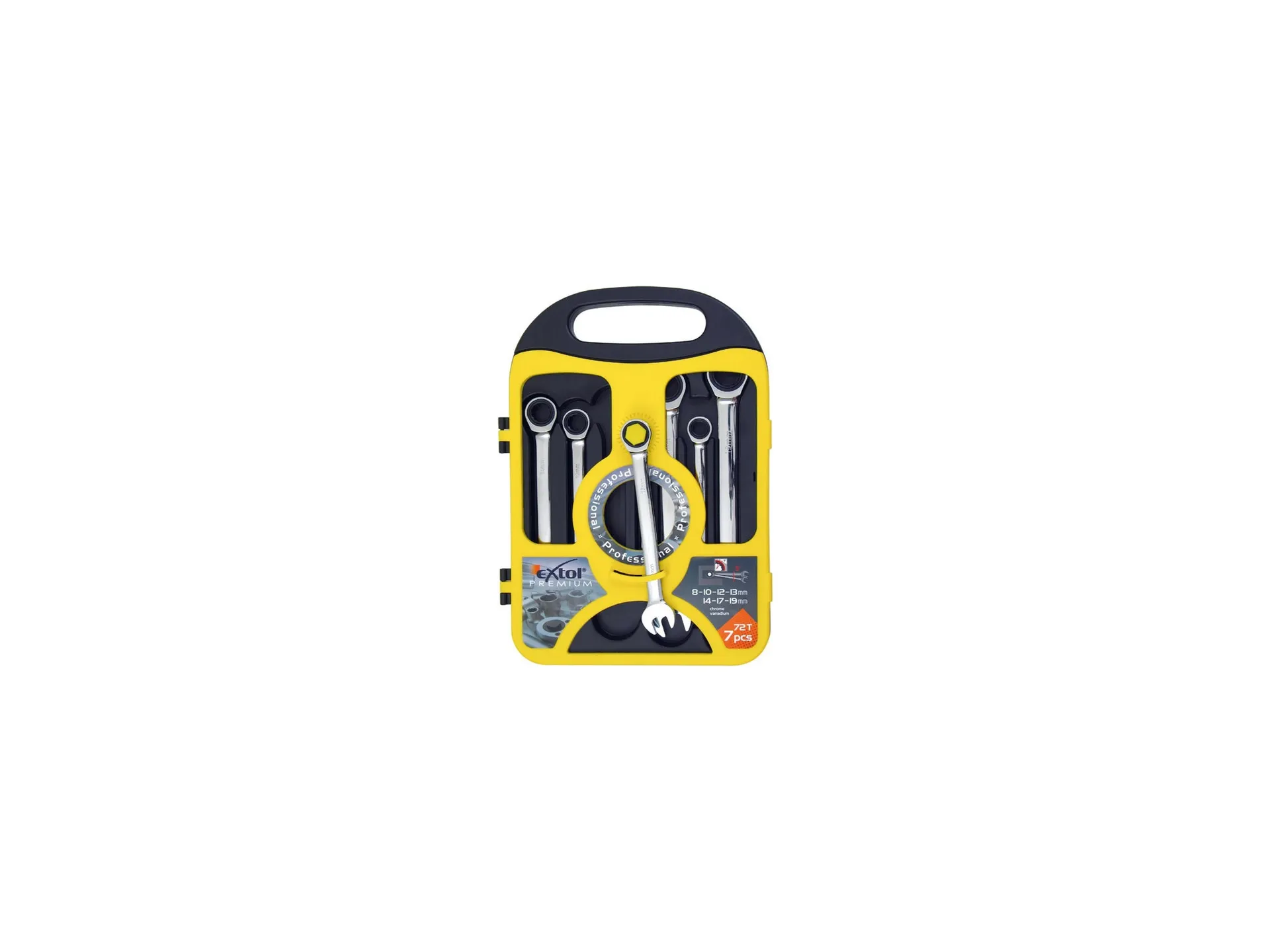 Zrušeno! nahrazeno výrobkem 8816100, ráčnové klíče očko/ploché sada 7ks, 8-19mm crv, ráčna 45 zubů EXTOL PREMIUM 65900
