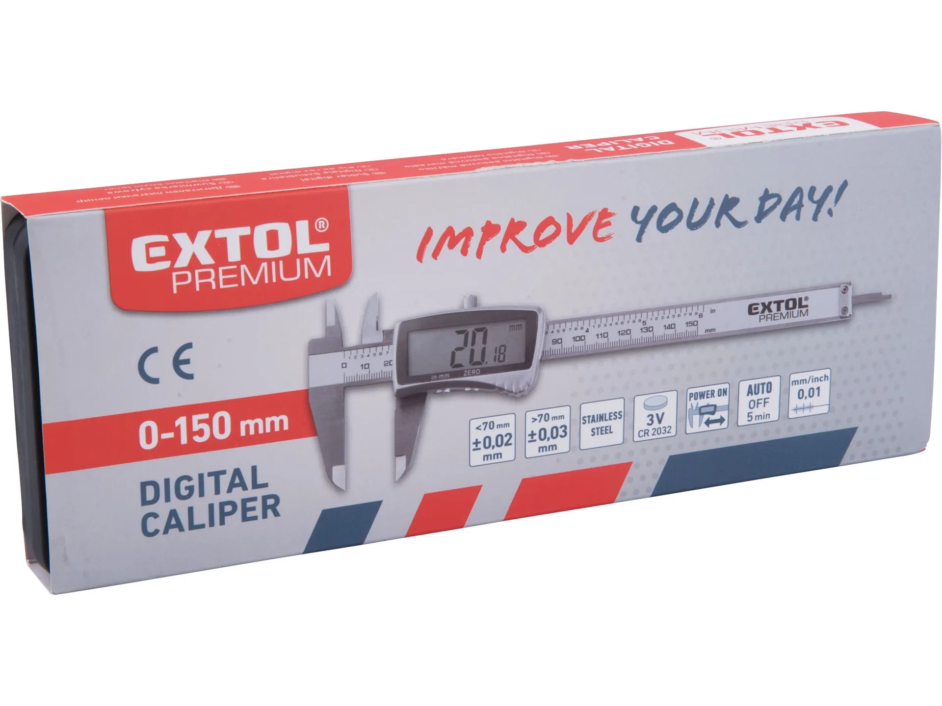 - Technické parametry: 0-150mm, podsvícení displeje
