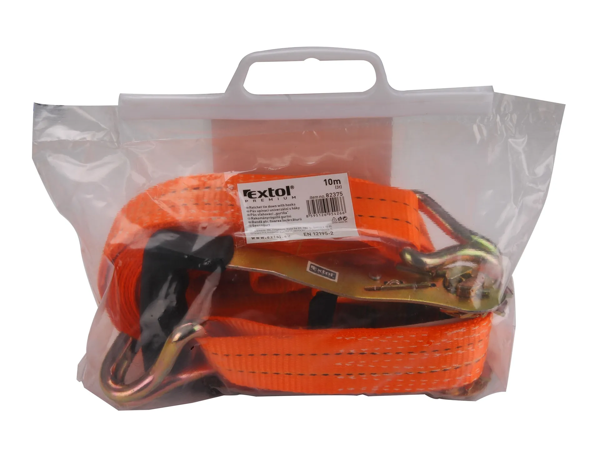 Zrušeno! nahrazeno výrobkem 8861155, pás upínací ráčnový s háky, 10m x 50mm, max. 1200kg, pes EXTOL PREMIUM 82375