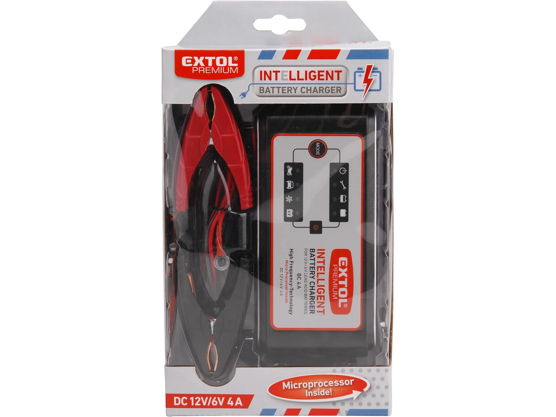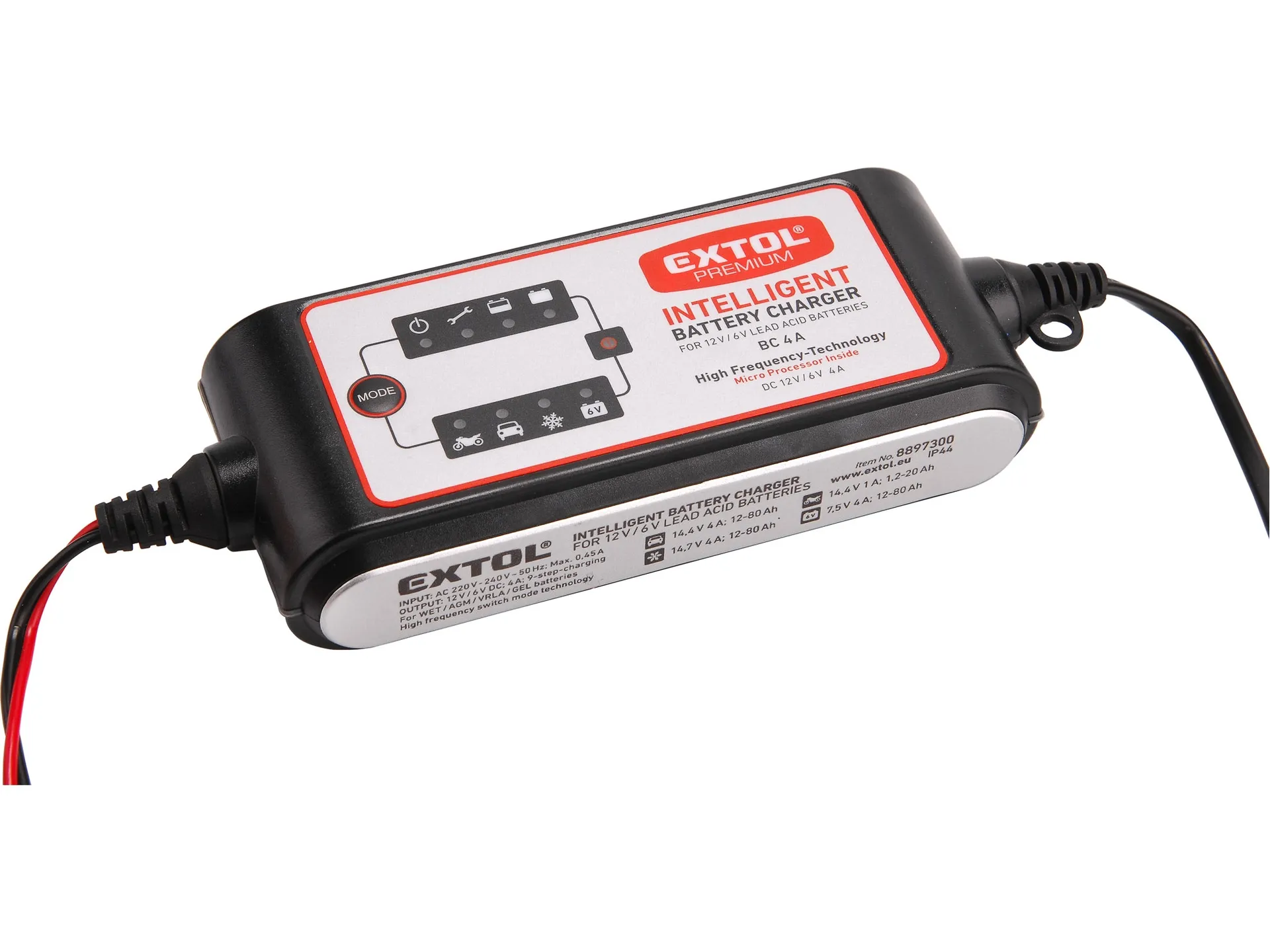 Zrušeno! nahrazeno výrobkem 8897302 autonabíječka 9stupňová, řízená mikroprocesorem, 12/6v, 4a EXTOL PREMIUM 8897300