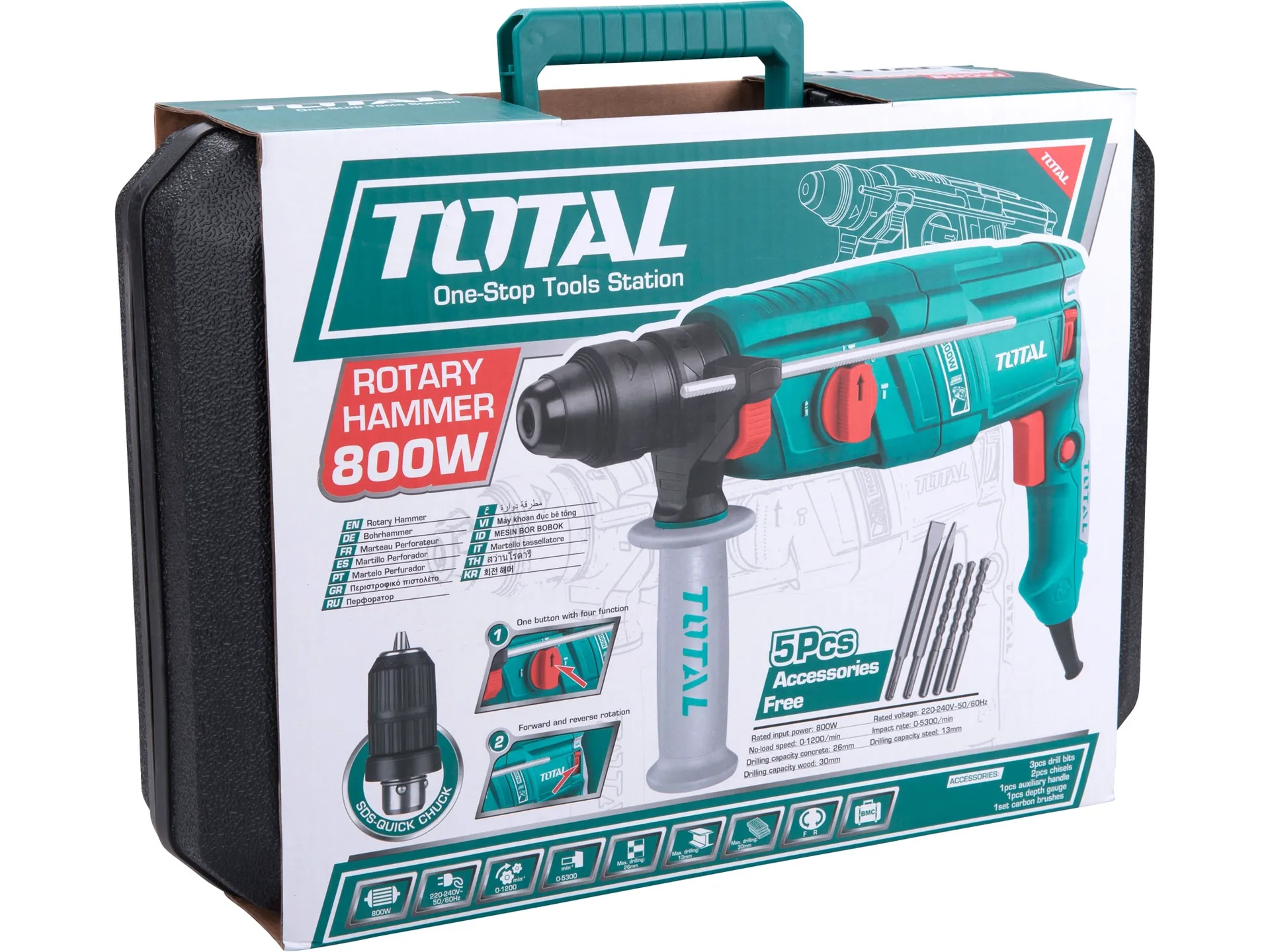Zrušeno! nahrazeno výrobkem th308268-2, kladivo vrtací, sds plus, 2,5j TOTAL TH308266-2
