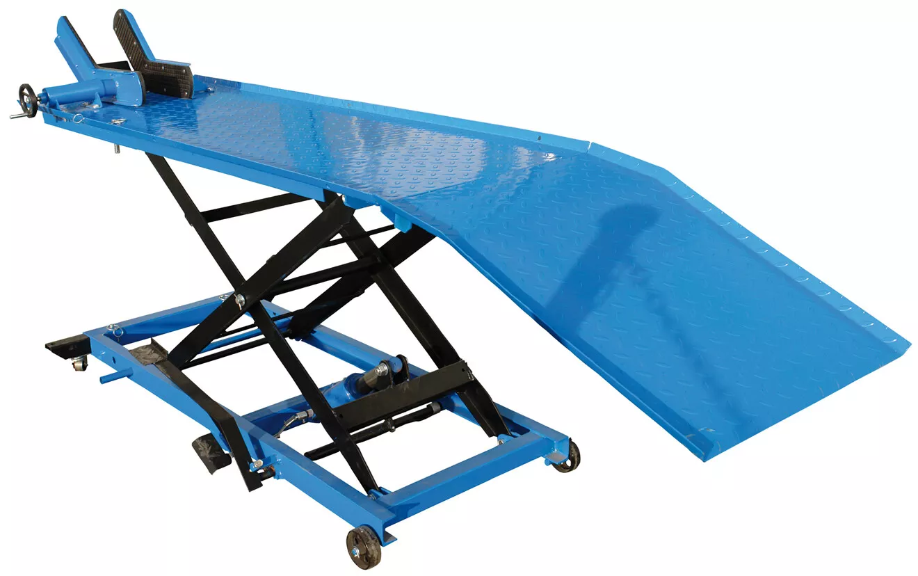 - Hydraulická zvedací plošina, určená ke zdvihání motocyklů v prostředí garáží, domácích/servisních dílen apod