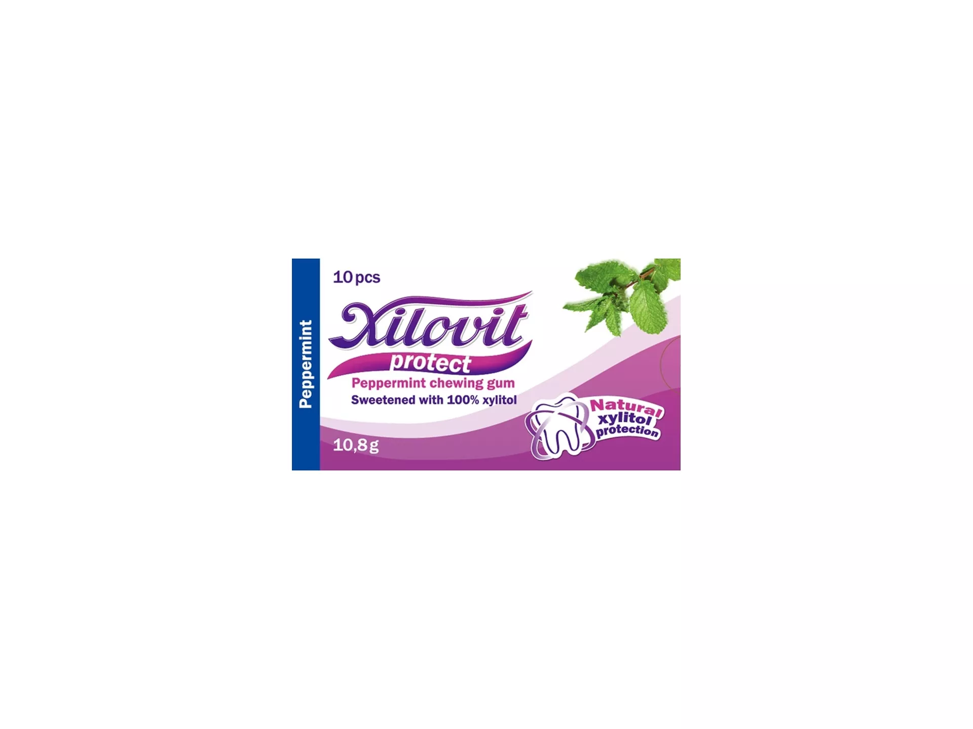 - Žvýkačky Xilovit Protect jsou žvýkačky slazené xylitolem. Xylitol je látka, která se přirozeně vyskytuje téměř v každém ovoci a zelenině, není tedy umělým sladidlem. Xylitol je bílý krystalický prášek, který vypadá jako cukr a chutná jako cukr. Získává se z vláken březové kůry nebo z kukuřičných palic. Žvýkačky jsou vyrobeny z přírodních surovin, neobsahují aspartam ani jiná umělá sladidla. Optimalizují hodnotu pH v ústní dutině, odstraňují zubní plak a zabraňují tvorbě zubního kazu.Žvýkačky Xilovit Protect omezují vznik kyselého prostředí v ústech, protože bakterie v ústech nedokážou xylitol metabolizovat a tím vytvářet kyselinu, podporující vznik zubního kazu.Neschopnost bakterií vytvářet kyseliny v přítomnosti xylitolu znamená, že nedochází ke snižování pH v ústech, což zabraňuje úbytku minerálních látek ze zubů.Pro dosažení nejlepších výsledků se doporučuje používat žvýkačky Xilovit Protect třikrát denně nebo po každém jídle.Žvýkačky jsou vhodné pro diabetiky díky nízkému glykemickému indexu, který má hodnotu 7. Např. fruktóza má glykemický index 19 a řepný cukr 100.Xylitol má navíc o 40% méně kalorií, proto jsou žvýkačky Xilovit Protect nízkokalorické.Žvýkačky jsou vhodné také pro vegany neboť včelí vosk je zde nahrazen Carnaubou - palmovým voskem.
